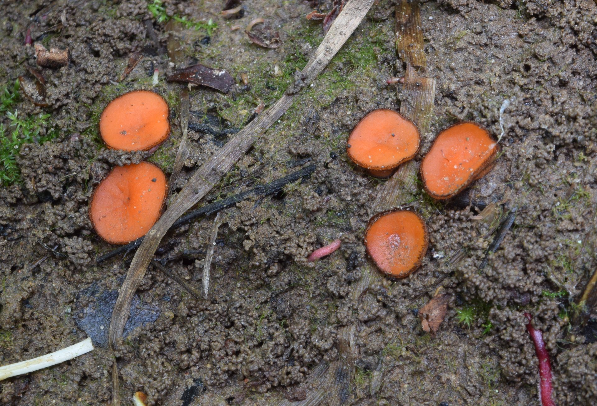 Apothecia on undetermined wood partially buried in bank of Stanford Brook